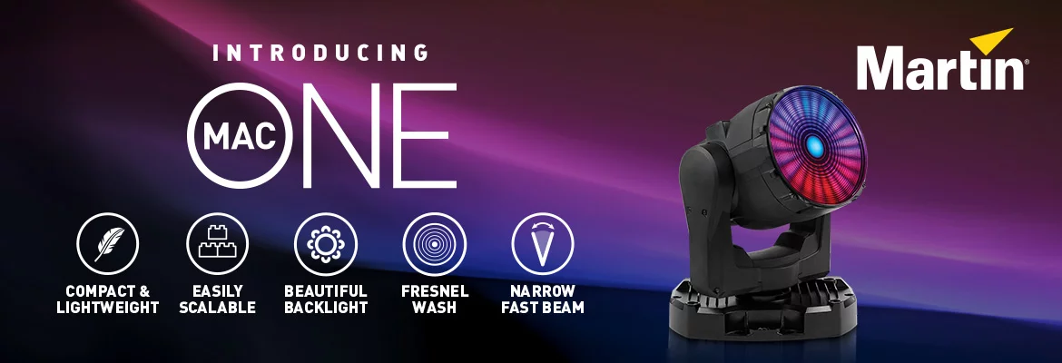 Der MAC One setzt neue Maßstäbe für kompakte Moving Lights. Der Beam-, Wash- und Eye-Candy-Scheinwerfer verfügt über eine hochwertige Fresnellinse und verwandelt jede Bühne und jedes Event in ein optisches Highlight. Kompakt, leicht und vielseitig definiert der MAC One eine neue Klasse kompakter Scheinwerfer.